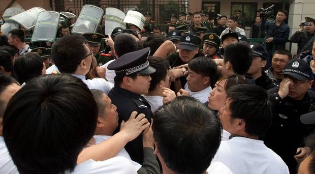 Familiares de passageiros chineses enfrentam polícia em protesto por avião desaparecido