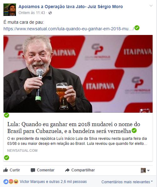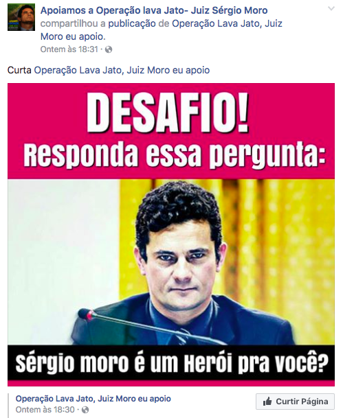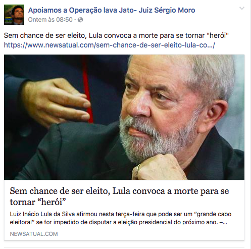 A página “Apoiamos a Operação Lava Jato – Juiz Sergio Moro” é especializada em três coisas: Lula, Lula e fake news.