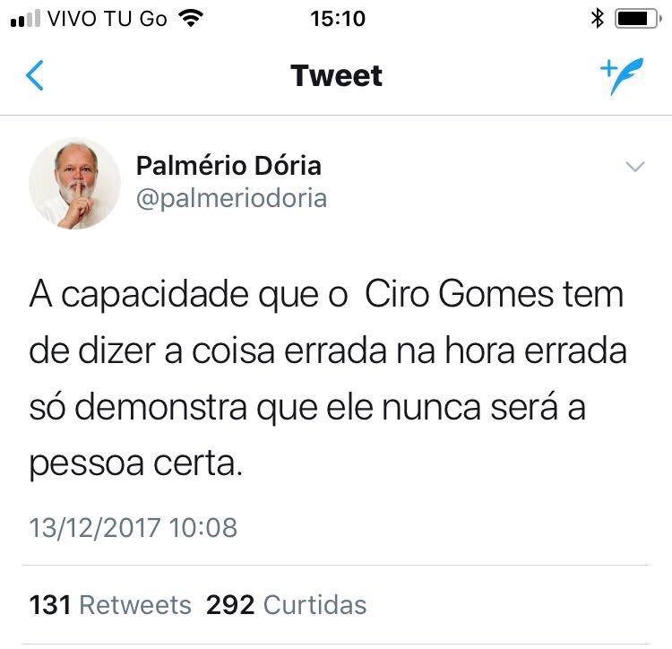 Palmério Dória: “A capacidade que o Ciro tem de dizer a coisa errada na hora errada só mostra que ele nunca será a pessoa certa”