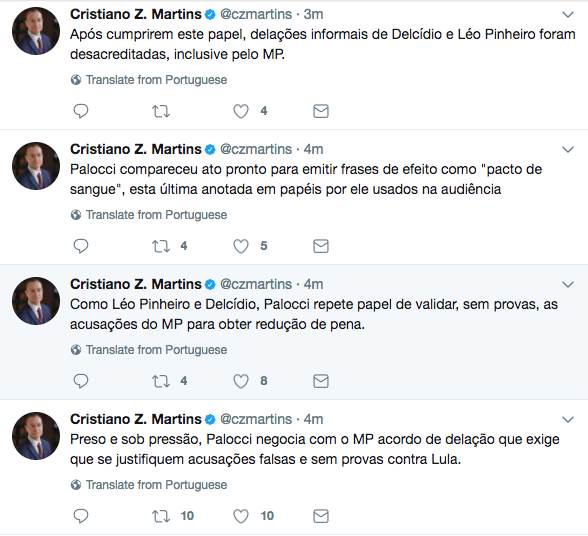 “Palocci valida, sem provas, acusações do MP para obter redução de pena”, diz defesa de Lula