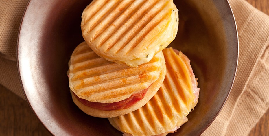 A receita usa a massa tradicional do pão de queijo, caseira ou industrializada. Em vez de moldar bolinhas, ela é aberta em formato de disco, recheada a gosto, com queijo, presunto, frango desfiado ou até goiabada, e dobrada antes de ir à sanduicheira. O calor direto forma uma crosta crocante por fora, mantendo o interior derretido e cremoso.