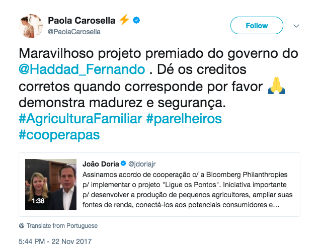 Paola Carosella desmascara Doria em tentativa de se apropriar de projeto de Haddad