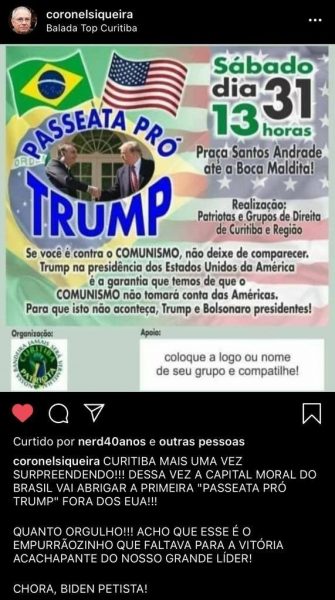 O fantasma do comunismo conseguiu unir alguns brasileiros em torno de pautas comuns: na sábado, 13 de novembro, por exemplo, ‘patriotas’ vão se reunir em Curitiba, república da Lava Jato para uma caminhada em prol da candidatura de Trump nos Estados Unidos.