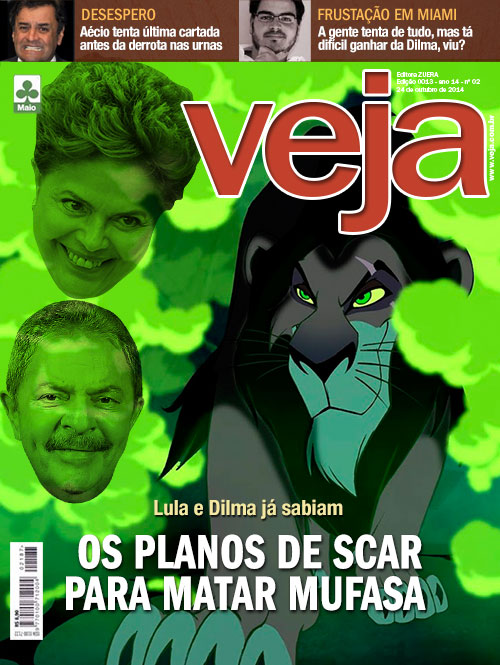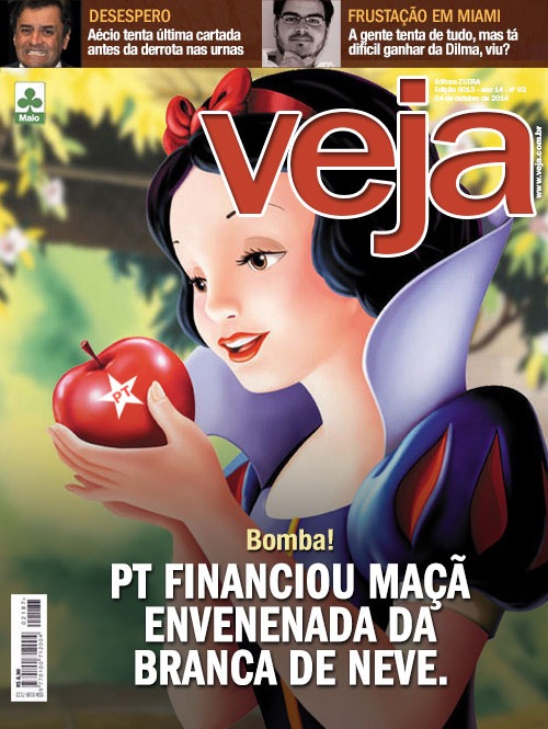Com uma nova edição às vésperas da eleição recheada de novas “denúncias” do doleiro Alberto Youssef, a Veja tornou-se piada na internet. Uma conta colaborativa no Tumblr chamada ‘Desespero da Veja’ está reunindo diversas capas montadas por internautas.