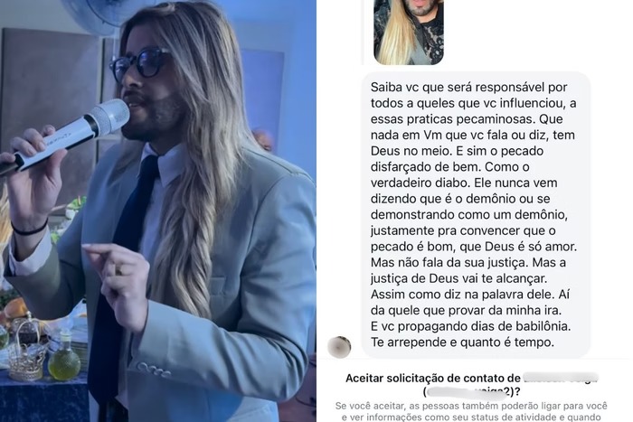 O pastor Felipe Freire, que se identifica como gay e andrógino, tem recebido ataques e ameaças de morte nas redes sociais. Ele atua na Igreja Contemporânea e acolhe pessoas da comunidade LGBTQIA+ no templo religioso. A igreja fez uma publicação nas redes na última terça (28) com um vídeo do pastor e há mais de 3 mil comentários, sendo grande parte ataques contra o religioso. A instituição afirmou que vai acionar a Justiça contra os responsáveis pelas ofensas.