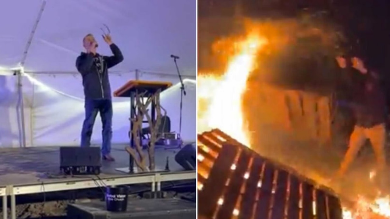 Em um vídeo compartilhado na página do Facebook de Locke no dia do evento, as pessoas podem ser vistas jogando itens em uma fogueira do lado de fora da igreja.