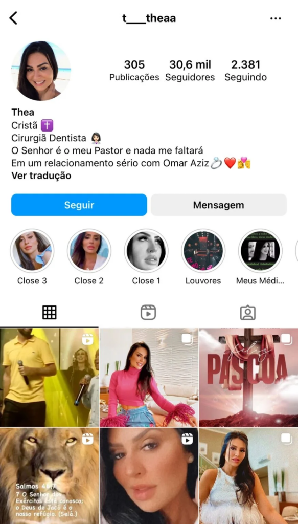 Em seu perfil do Instagram, a cirurgiã dentista publica “fotos sensuais” e diversos versículos da Bíblia. Além da declaração ao senador, ela escreveu a famosa frase em sua bio: “o senhor é meu pastor e nada me faltará”. Os internautas aproveitaram para ironizar com a pastora pelos incidentes.