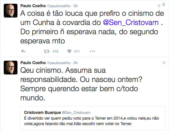 Paulo Coelho detona Cristovam Buarque: “Que cinismo. Assuma sua responsabilidade”
