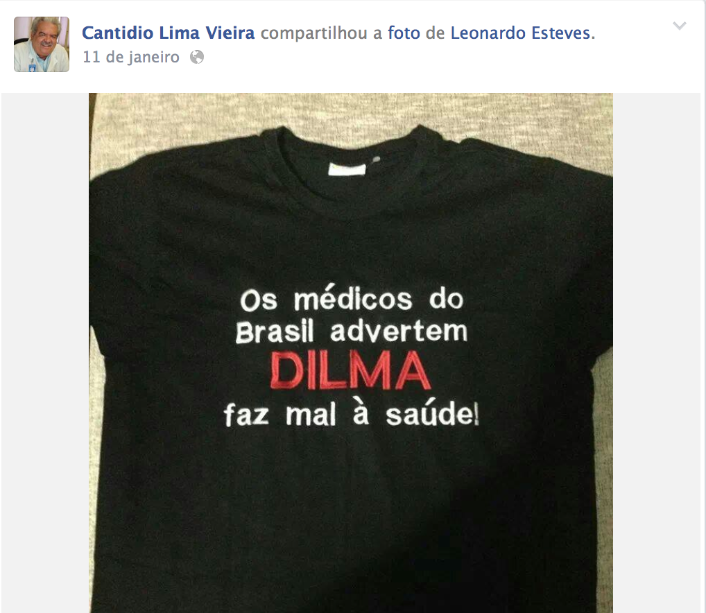 O post ainda destaca que o cardiologista Cantídio Lima Vieira, um dos médicos que assinaram o laudo de Genoino, em sua conta no Facebook, “postou: ‘Os médicos do Brasil advertem: Dilma faz mal à saúde'”.