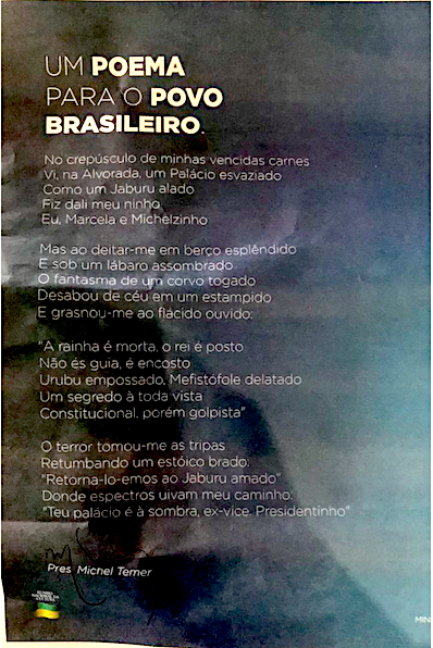Poema atribuído a Temer sobre fantasmas do Planalto viraliza