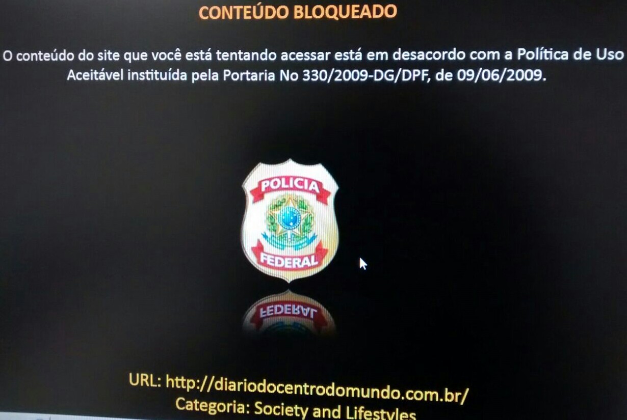 Um leitor do DCM que milita na PF nos mandou uma foto do que acontece quando alguém tenta nos acessar lá de dentro. “Olha o que aparece quando tentamos acessar o site de vocês a partir de um computador da PF. Os delegados querem o psdb de qualquer jeito. A pf está um horror para os agentes que são “de esquerda”.”