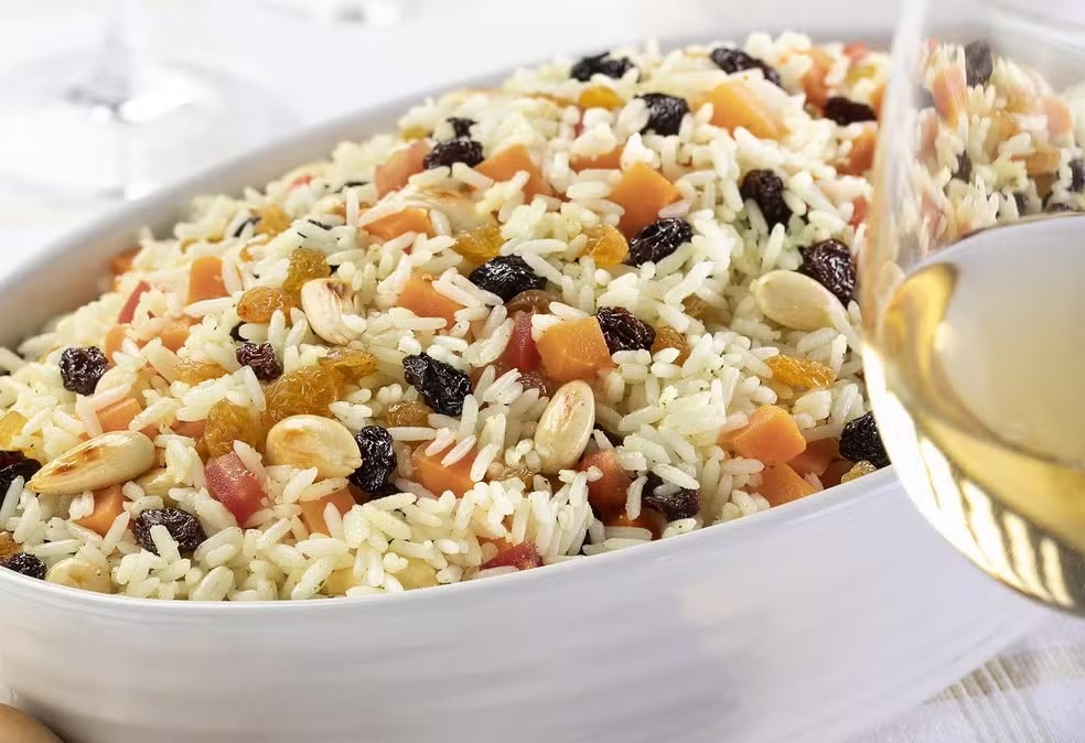 O que poucos sabem é que essa combinação tem origem milenar. O uso de frutas secas em pratos quentes começou no Oriente Médio, há cerca de 4 mil anos, quando elas funcionavam como adoçantes naturais. O costume atravessou a Roma Antiga, foi associado a festividades de fim de ano e chegou à Europa, onde a influência árabe consolidou o uso de frutas secas com arroz em preparações festivas.