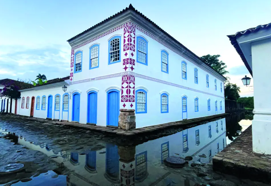 Em Paraty (RJ), o calçamento do centro histórico foi projetado para permitir alagamentos controlados. A água cobre as ruas em dias de chuva.
