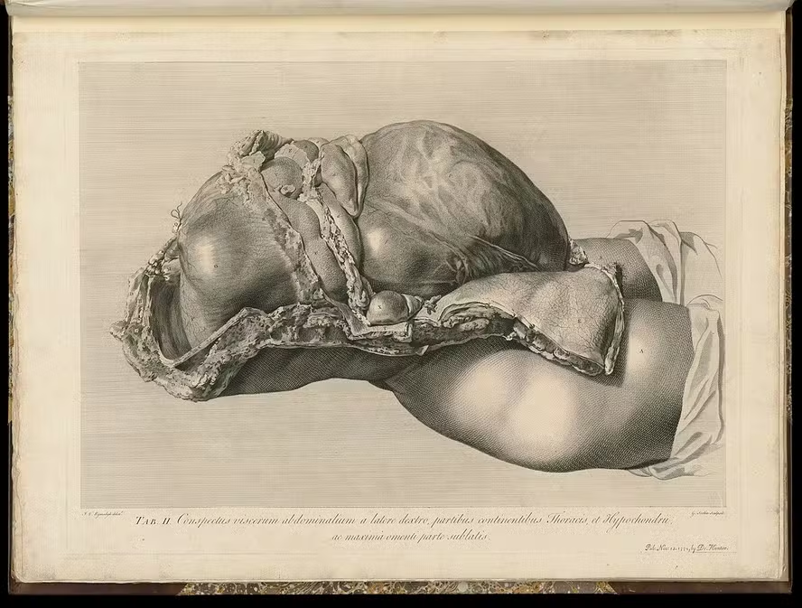 A obra “The Gravid Uterus” (1774), de William Hunter, mostra mulheres grávidas dissecadas com distanciamento clínico. A origem desses corpos permanece questionável: “É mais provável que tenham sido adquiridos através do roubo de cadáveres, uma prática comum, mas ilegal”. Na época, apenas quatro cadáveres foram legalmente disponibilizados para dissecação em Londres entre 1752 e 1776, tornando improvável a legalidade dos espécimes.