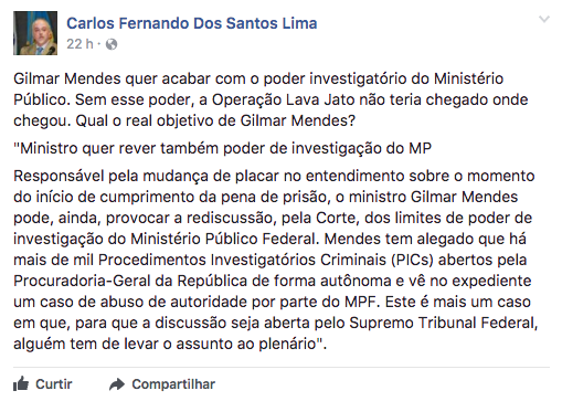 Do Facebook do procurador Carlos Fernando dos Santos Lima: