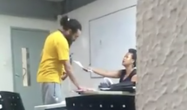 A ação foi gravada por estudantes que estavam dentro da sala de aula. As imagens mostram Danilo Araújo de Góis se recusando a pegar a prova na mão da professora e pedindo que ela colocasse o exame em cima da mesa para que ele pudesse pegar.