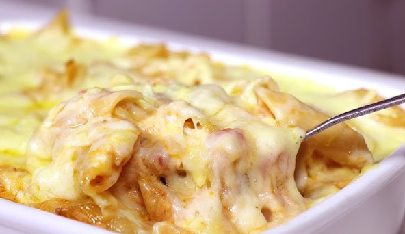 Receita de macarrão ao forno gratinado com presunto e muçarela