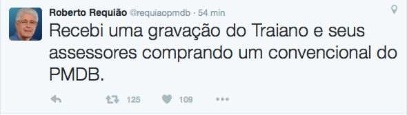 Requião diz que recebeu gravação em que “convencional do PMDB” é comprado para impeachment