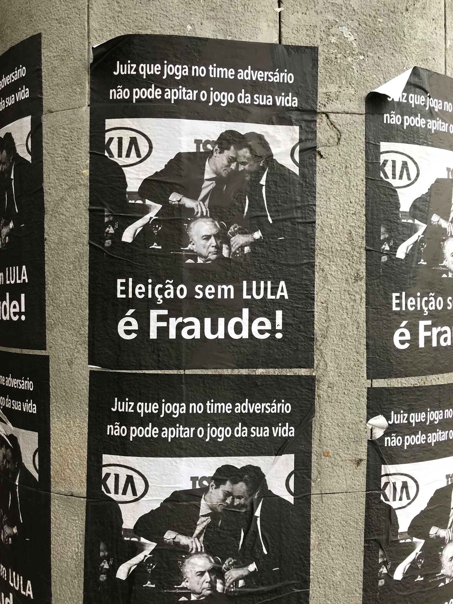 Cartazes “Eleição sem Lula é fraude” apareceram na manhã desta segunda-feira na região central do Rio De Janeiro.