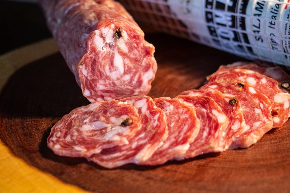 O salame italiano é caracterizado pela cura prolongada, que concentra o sabor e cria textura firme. Ele costuma levar pimenta-do-reino, vinho e alho na composição.