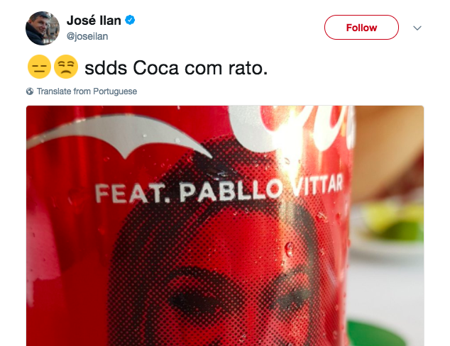 Ele postou uma foto da lata de Coca Cola em homenagem a Vittar acompanhado da legenda: “Sdds [saudades] Coca com rato”. Em seguida. provavelmente por ordens superiores, se desculpou.