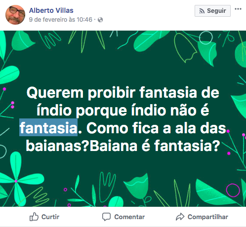 Se proibirem fantasia de índio, como fica a ala das baianas? Baiana é fantasia?