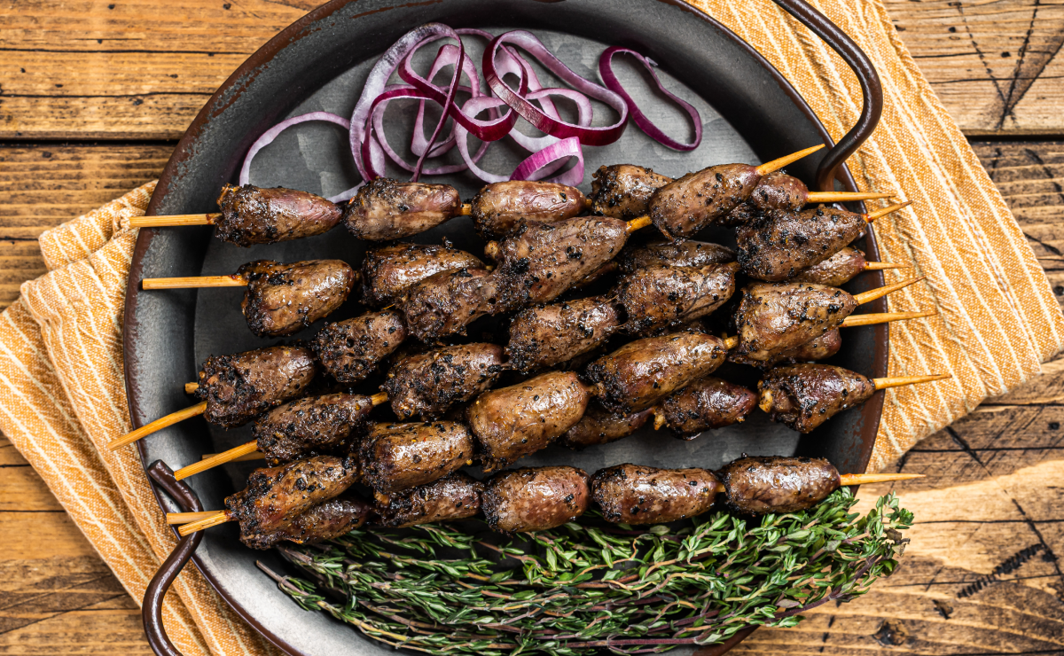 O coração de frango é um dos acompanhamentos mais tradicionais do churrasco. Geralmente servido em espetos, conquista pela praticidade e sabor marcante.