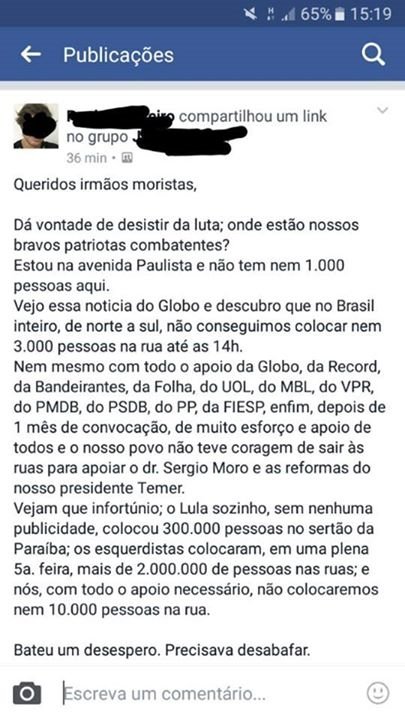 Seguidor de Moro lamenta fiasco de protesto: “Onde estão nossos bravos combatentes?”