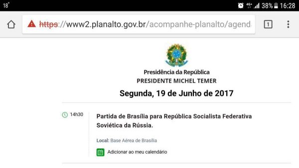 Segundo agenda do Planalto, Temer viajou para a “República Socialista Soviética da Rússia”