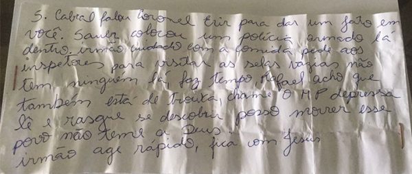 A verdade é que o bilhete cuja grafia agora será examinada pela polícia foi entregue por Garotinho a seu advogado Carlos Azeredo, que o apresentou à polícia. O bilhete, como viram acima, é claro. Quem pediu para Garotinho ser espancado foi Sérgio Cabral. Aliás, conforme ameaça feita há algum tempo atrás, e comunicada a Garotinho, que pediu proteção policial ao governador Pezão, que nada fez.