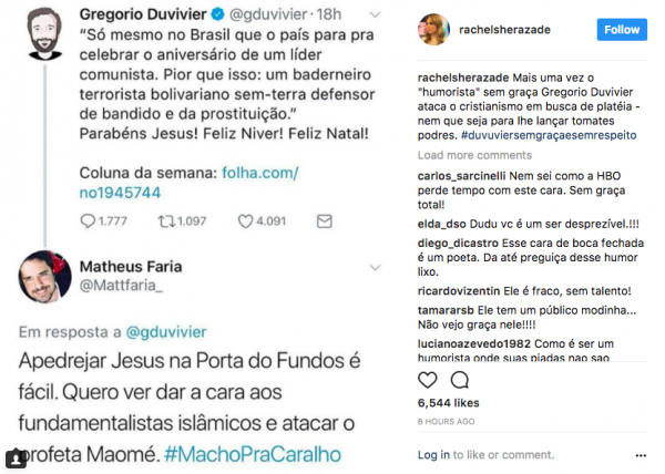 Sheherazade usa namorado para atacar Duvivier: “humorista sem graça em busca de plateia”