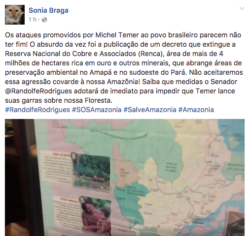 Sônia Braga: “os ataques promovidos por Michel Temer ao povo brasileiro parecem não ter fim”
