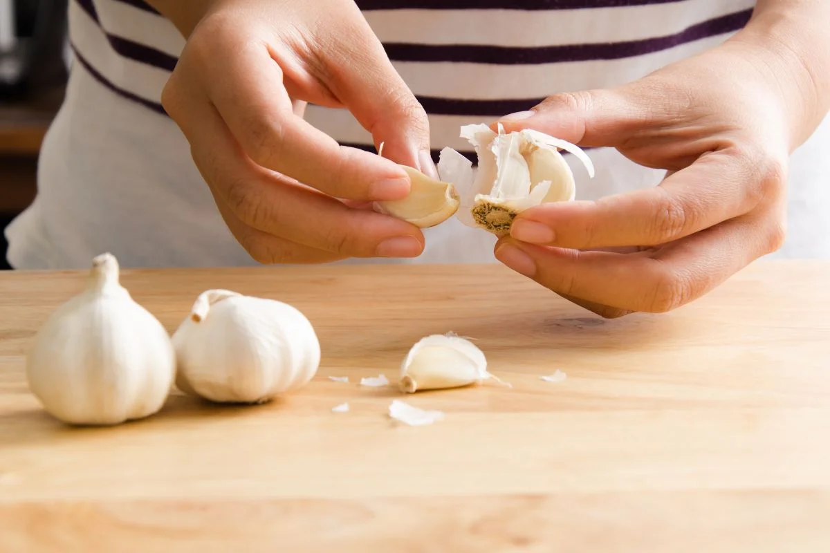 O alho pode ser descascado com facilidade após contato breve com água quente. O processo afrouxa a casca e facilita a remoção manual. A técnica é usada em cozinhas domésticas para acelerar o preparo.