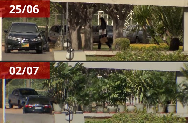Nas duas imagens acima, dos cinegrafistas Rafael Franzoni e Edson Cordeiro, da TV Globo, é possível comparar como era a visão da área de entrada do Jaburu sem o corredor de plantas e como ficou agora com o paredão de plantas. Já no vídeo abaixo é possível perceber como ficou difícil de identificar quem ingressa na residência oficia.