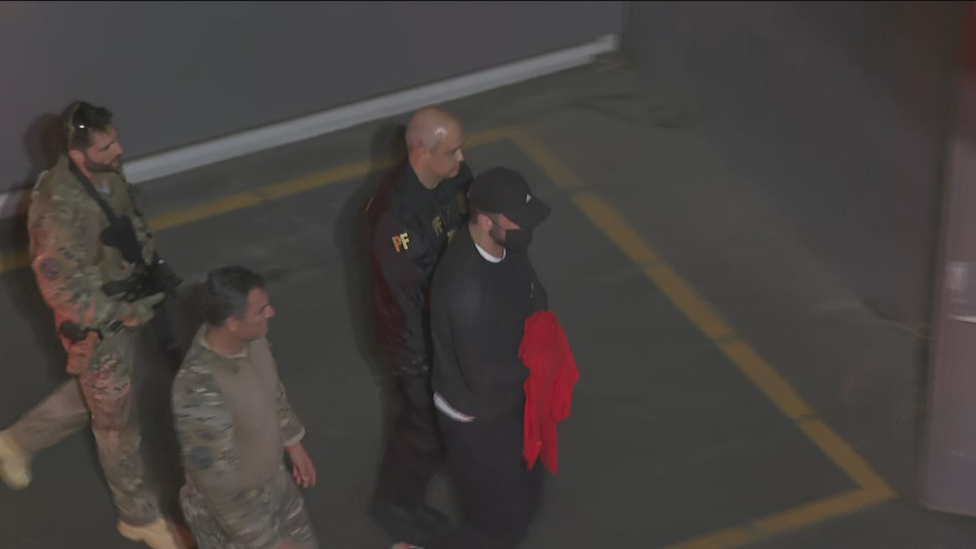Após o desembarque, o herdeiro é acompanhado por agentes da PF até a Superintendência Regional da Lapa, onde vai fazer exame de corpo delito e passar a noite enquanto aguarda a audiência de custódia no domingo (30).