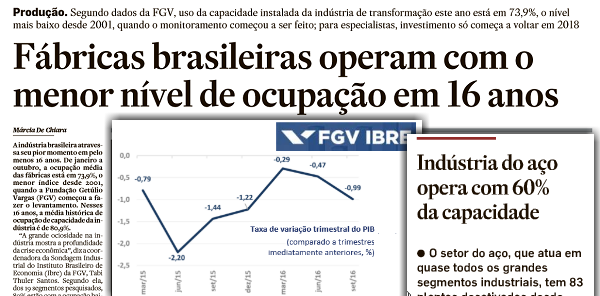 Na figura menor, o Monitor do PIB da Fundação Getúlio Vargas, divulgado na sexta-feira, a prova disso: as quedas (…) revelam que há uma acentuação do declínio do Produto Interno Bruto deste que o “salvador” impeachment mudou radicalmente a política brasileira.