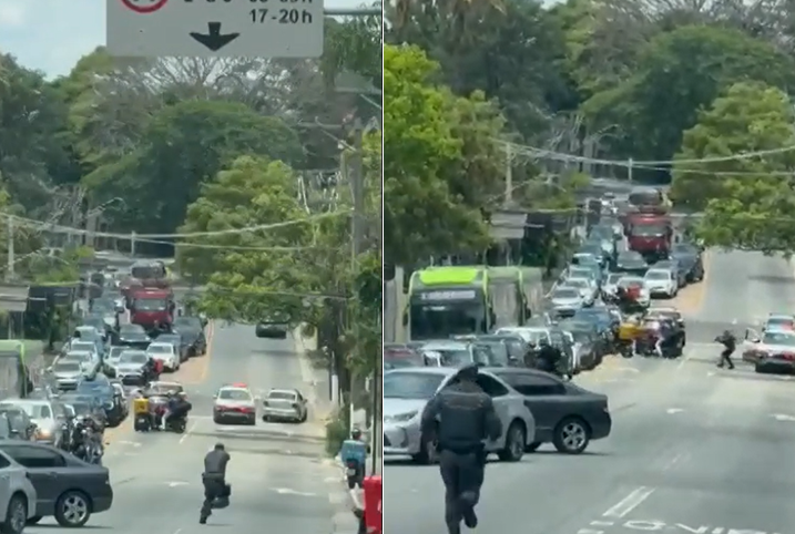 Tiroteio na Avenida Morumbi envolve PMs e suspeitos de assaltar farmácia; veja vídeo