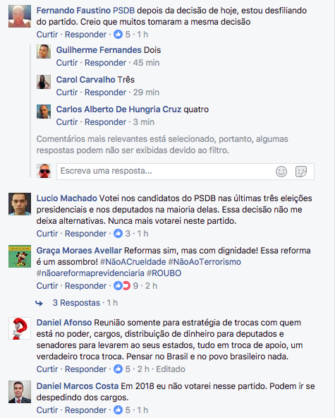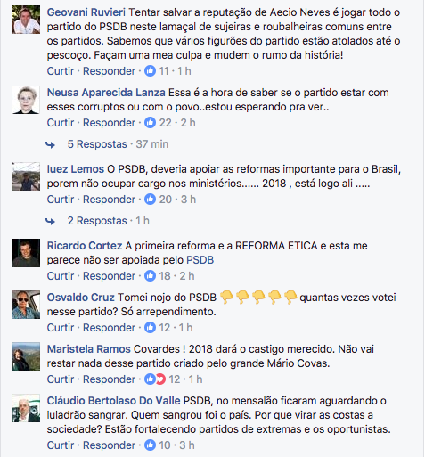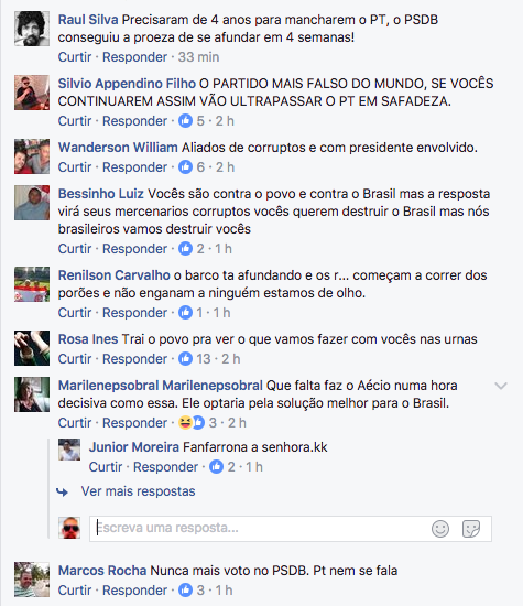 A página oficial do PSDB no Facebook tornou-se um muro das lamentações depois que o partido saiu do armário e anunciou que permanece no governo Temer.