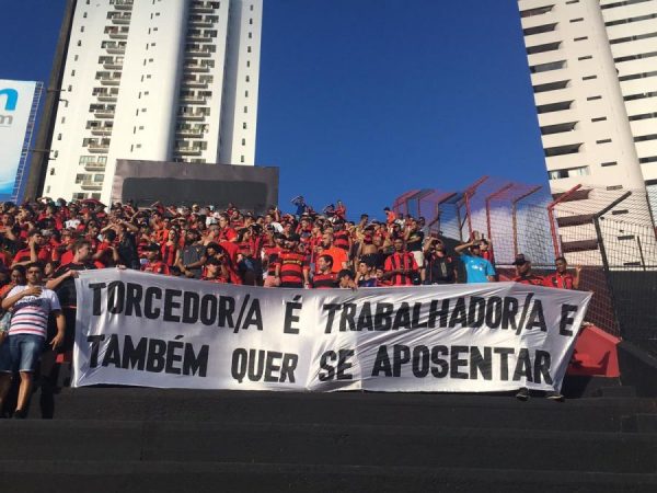 Torcida do Sport é impedida de entrar no estádio com faixa contra a reforma