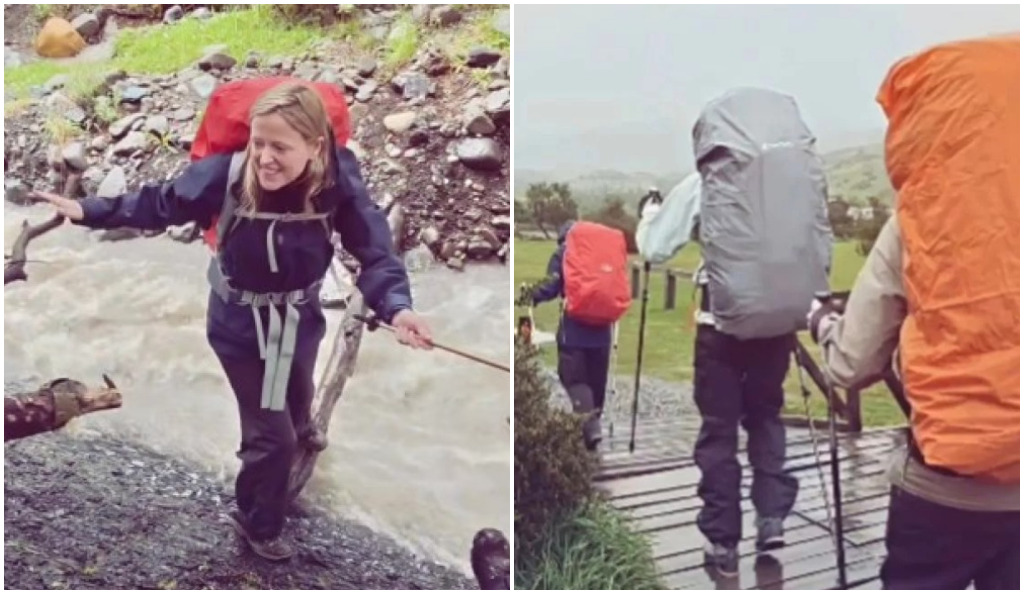 Ela relatou chuva intensa, trilhas alagadas e cinco travessias de rio com “apenas uma ponte”, além de brincadeiras como “deveríamos ter trazido uma canoa e um padre”. Apesar das dificuldades, o grupo narrou que o céu chegou a abrir e o vale “se abriu como uma lata de pêssegos”, o que lhes deu ânimo para seguir adiante.