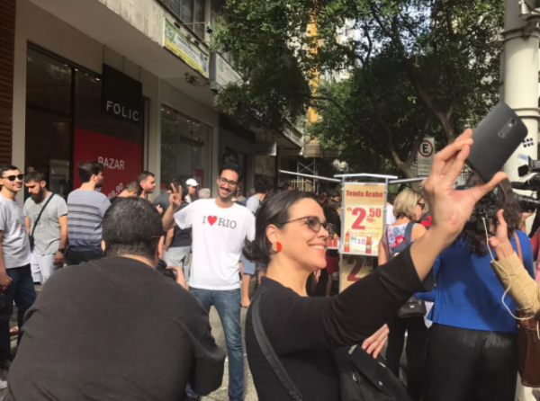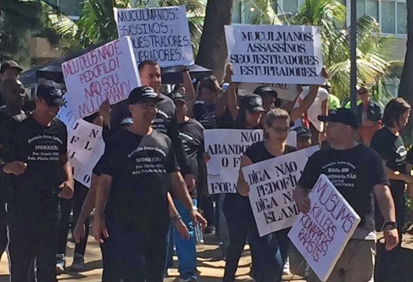 Na cidade, cariocas de natureza realizaram protesto no sentido oposto. Marcharam com cartazes com frases ofensivas ao Islã, fazendo eco a manifestações de grupos como MBL (apoiador de primeira hora de João Doria e outros políticos de direita), que são contrários à imigração.