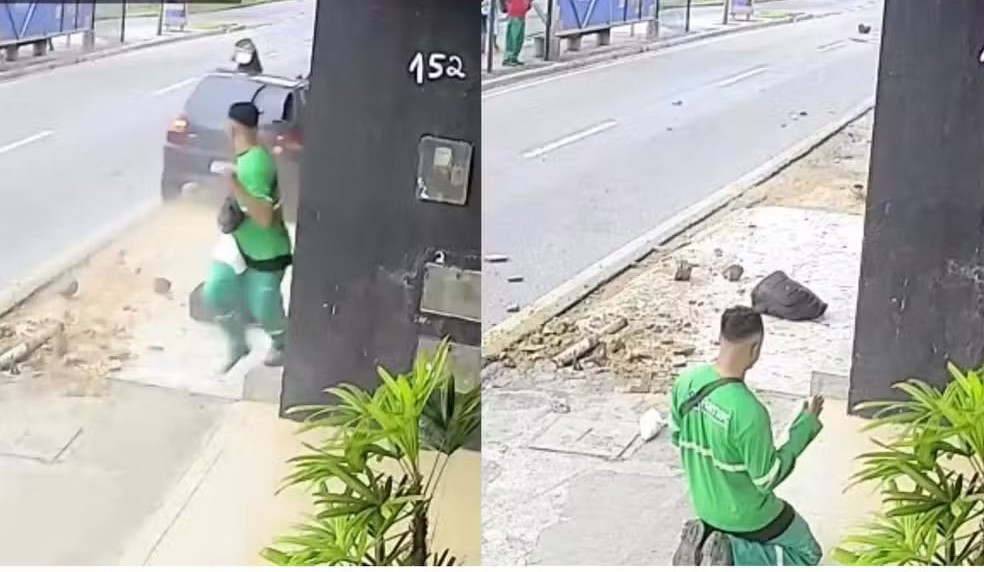 VÍDEO: agente de limpeza escapa de atropelamento por um triz e se ajoelha para rezar