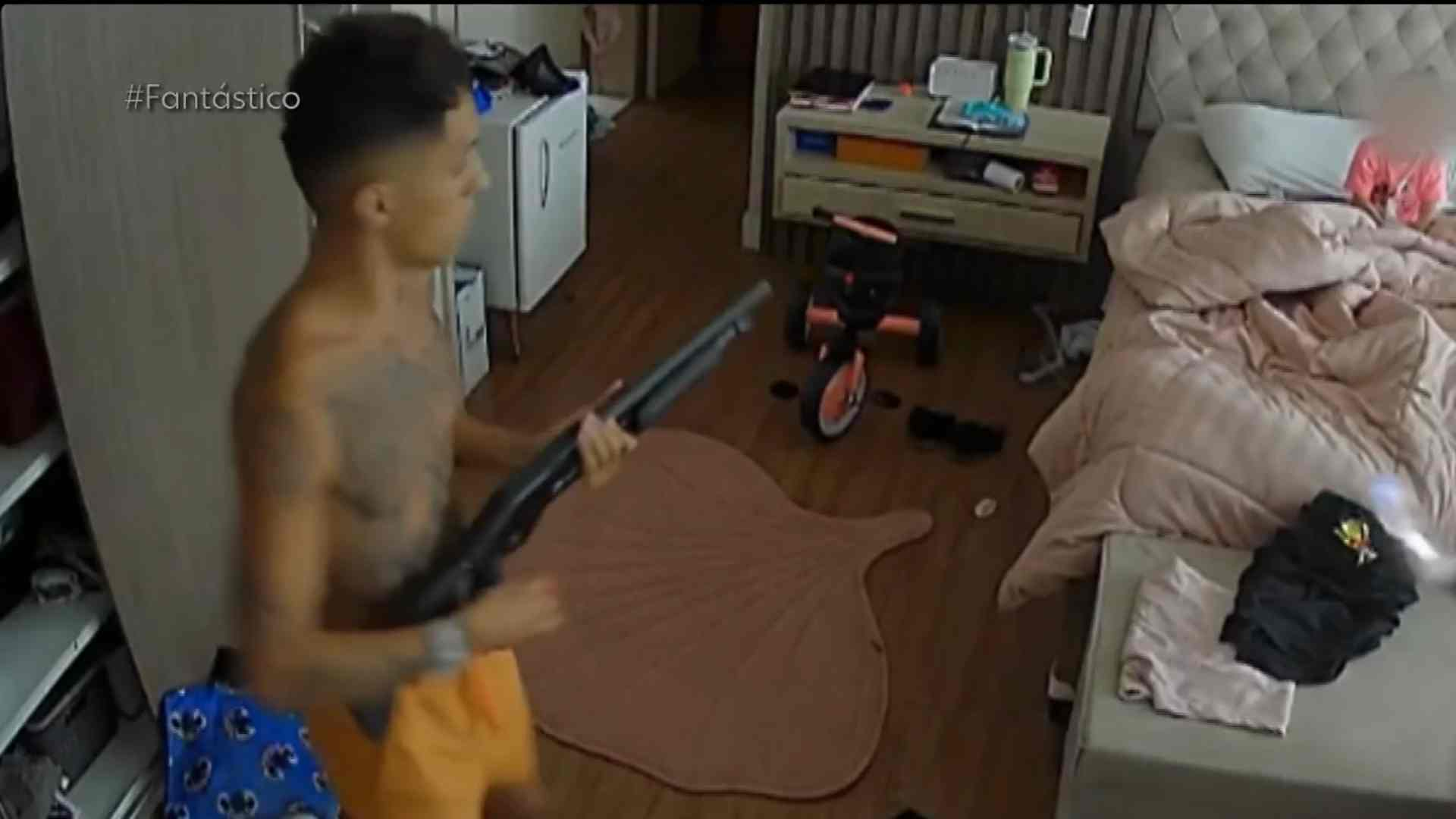 Na sequência do vídeo, o influenciador, que tem mais de 15 milhões de seguidores, sai do quarto e depois retorna sem a espingarda. A criança acompanha toda a movimentação da cama. O episódio ocorreu na casa do influenciador em Igaratá, durante a operação que investiga um esquema de lavagem de dinheiro ligado ao tráfico internacional de drogas.