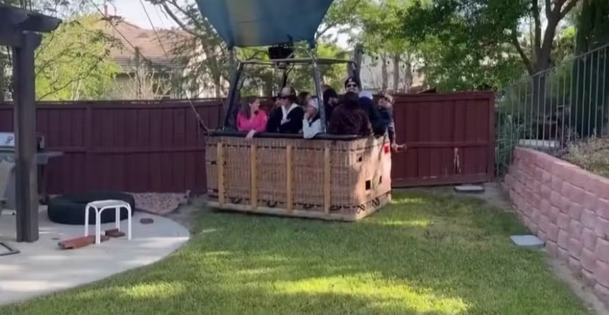 VÍDEO: Balão com 13 pessoas faz pouso inesperado no quintal de uma casa