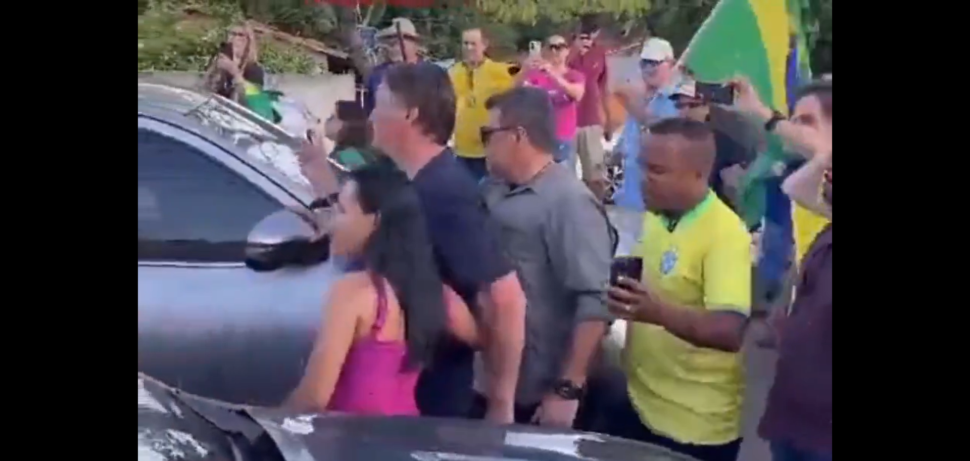 Nas imagens, o inelegível está rodeado de apoiadores. Em certo momento, um bolsonarista pede ao seu “mito” que mande um abraço para o menor em questão, morador de Tangará da Serra (MT), mas é ignorado pelo extremista.