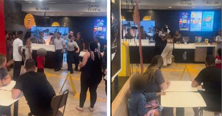 Nas imagens, é possível ver um casal discutindo com dois empregados, com a situação escalando para agressões físicas. Durante o confronto, uma criança que acompanhava o casal ficou visivelmente assustada e começou a chorar. Em um dos momentos, a cliente arremessa um lanche no funcionário, e logo em seguida, outro lanche é jogado contra o cliente pelo funcionário. A confusão continuou com trocas de socos e xingamentos.