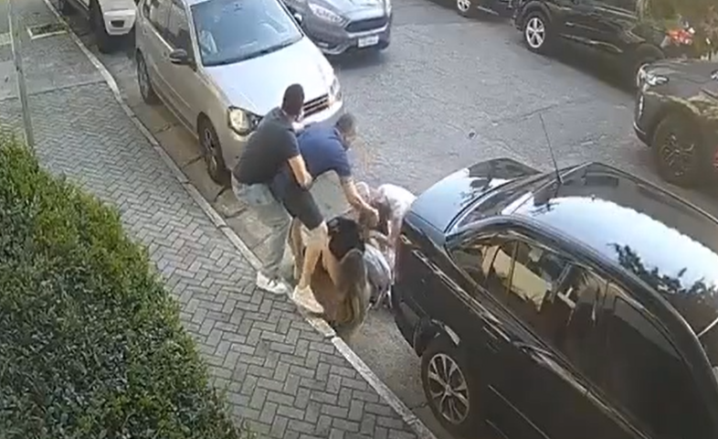 Dois casais se envolveram em uma briga com socos e puxões de cabelo no último domingo (17), no bairro do Carrão, zona leste de São Paulo. O conflito começou após uma discussão por uma vaga de estacionamento de visitantes em frente a um prédio. Imagens de câmera de segurança registraram o momento em que as agressões se iniciaram.
