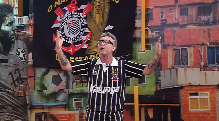“Sem o ‘Curinthia’, não tem zona. Sem o ‘Curinthia’, não tem putaria. Sem o ‘Curinthia’, não tem um puteiro nesse mundo. O mundo hoje é o ‘Curinthia'”, comemorou o ex-jogador às 13h na TV aberta, disparando confetes e zoando os comentaristas Veloso, ex-goleiro do Palmeiras, e Souza, que jogou no São Paulo.