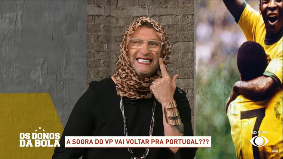 O ex-jogador Neto resolveu apresentar o programa “Donos da Bola”, da Band, nesta quarta-feira (1°), vestido de sogra do técnico Vítor Pereira, do Flamengo. Neto apareceu com uma roupa em alusão a uma mulher portuguesa, com saia, batom, lenço e ainda uma pinta no rosto.