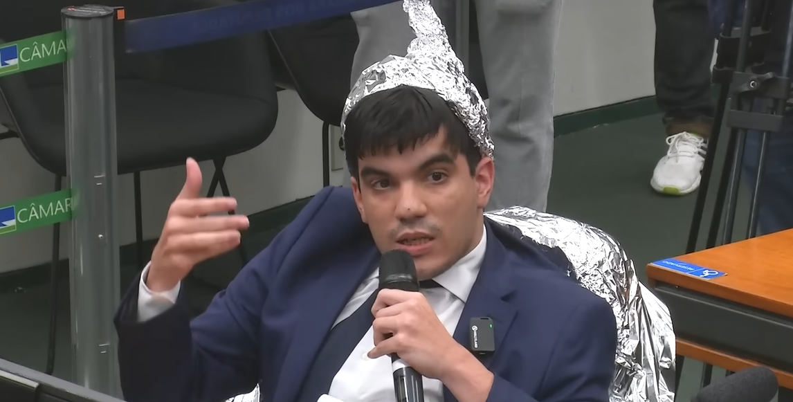 VÍDEO – Deputado do MBL usa chapéu de alumínio em audiência sobre OVNIs
